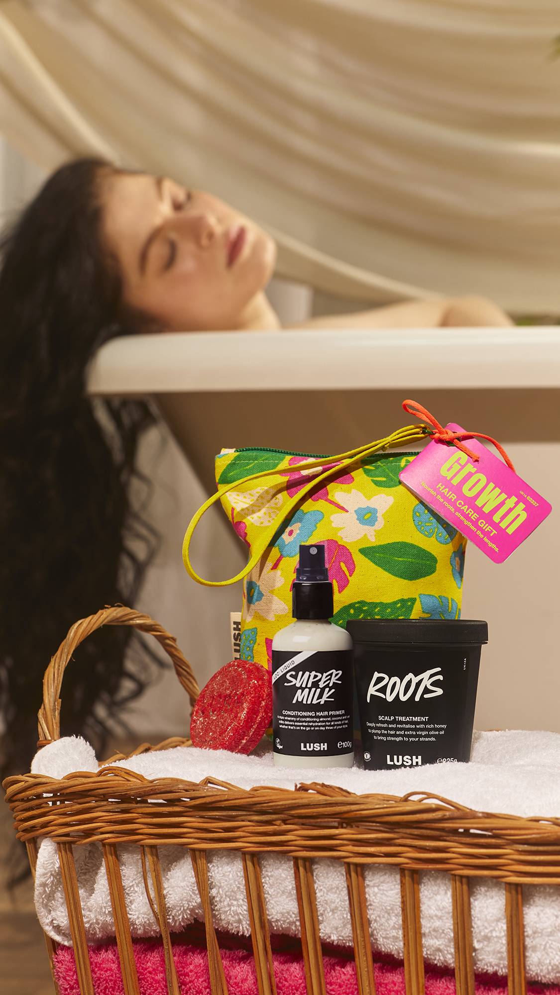 Nurture growing, healthy hair with this invigorating haircare trio in a reusable organic cotton travel bag. Add volume to fine, thin and dull hair with our minty scalp treatment, Roots, then lather up with New, a clove and cinnamon shampoo bar that stimulates the scalp. Finally, treat hair to our bestselling Super Milk Conditioning Hair Primer, a sweetly-scented, triple whammy of conditioning almond, coconut, and oat milks that delivers essential softness and rehydration.